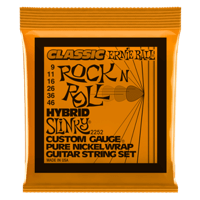 Now available in convenient three-set packs. Ernie Ball Slinky Classic Rock N Roll Pure Nickel wrap electric guitar strings are made from pure nickel wire wrapped around tin plated hex shaped steel core wire, these guitar strings produce a warm rich tone with that signature Slinky feel. Gauges .009, .011, .016, .026, .036, .046